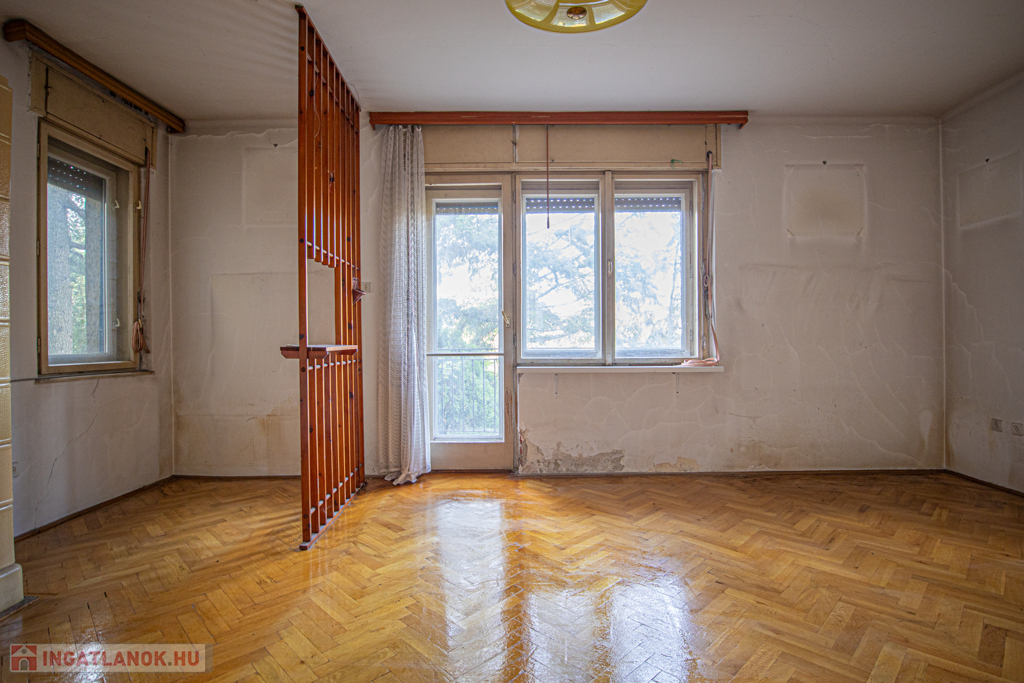 A beosztás jelenleg is kiváló, de a felújítás során akár tovább is alakítható pl. amerikai konyhás nappali + 2 hálószobássá.