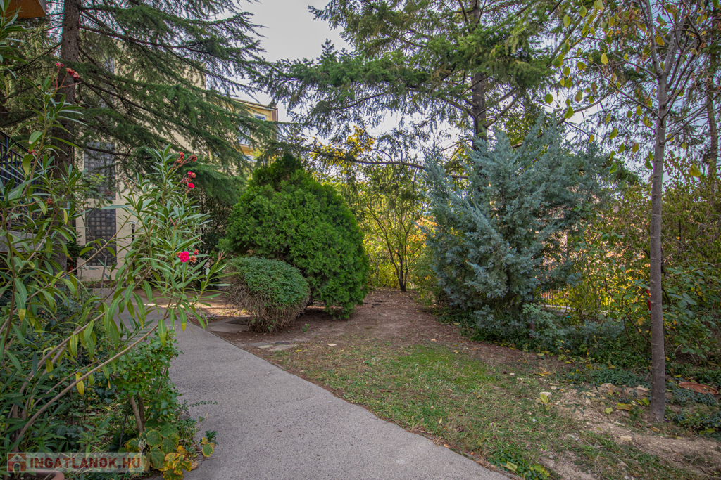 A lakás ablakai a ház kertje felé néznek, ennek köszönhetően nyugodt a lakás.